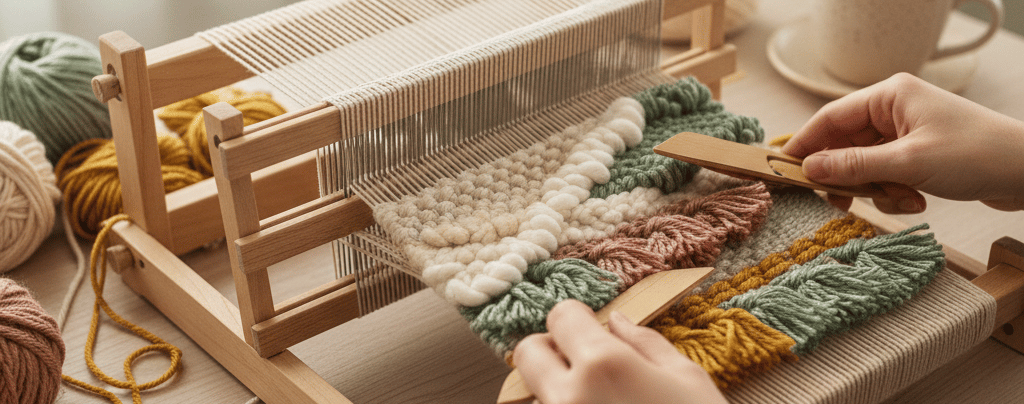 O tear de mão, ou tecelagem manual, é a técnica de entrelaçar fios (urdume e trama) para formar um tecido plano. Não é preciso ter um tear gigante; pequenos bastidores ou mini-teares de mesa são suficientes para criar tapetes decorativos, capas de almofadas ou peças artísticas texturizadas. Este hobby permite um controle total sobre o design e a combinação de materiais.