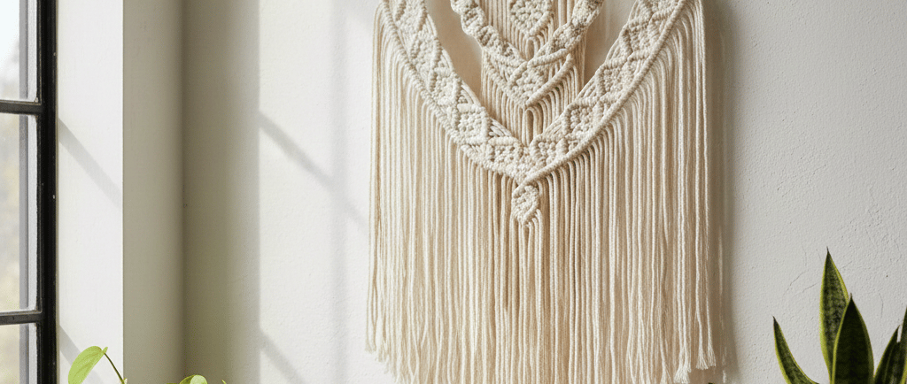 O macramê é a arte de tecer nós. É uma técnica versátil que não exige agulhas ou ferramentas complexas, apenas cordas e as suas mãos. De pequenos chaveiros a painéis de parede grandiosos e suportes de plantas boêmios, o macramê é um excelente exercício de paciência e coordenação motora, resultando em peças que transformam a decoração da sua casa.
